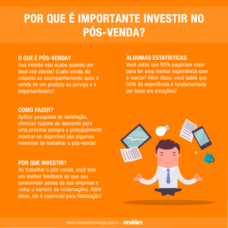 E você, já investe no pós-venda de sua empresa? Se você gostou do artigo de hoje, leia também 5 estratégias matadoras para otimizar o seu pós-venda! Por hoje vou ficando por aqui! Abraços e até a próxima! :)   Fontes: http://viverdeblog.com/pos-venda/