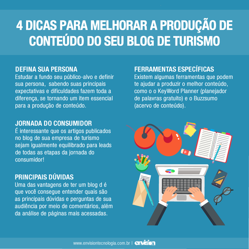 Como já falamos em nosso blog, um dos meios mais funcionais de atrair clientes sem ser invasivo é investir em Inbound Marketing, sendo das melhores maneiras criar um blog de conteúdo. Pensando nisso, no artigo de hoje trouxemos quatro dicas para gerar conteúdo relevante para seu blog de turismo e assim atrair seu público!