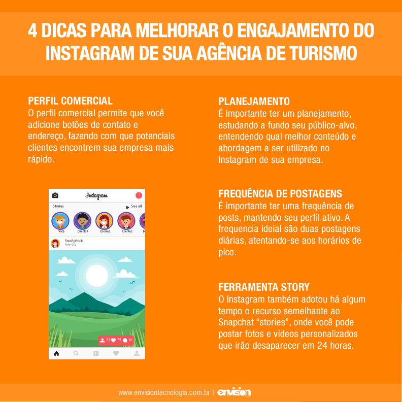 Você sabia que de 700 milhões de contas ativas no Instagram, pelo menos 35 milhões são perfis brasileiros? Além disso, o engajamento do Instagram tem aumentado consideravelmente nos últimos anos. Sendo assim, não utilizar o Instagram para promover seu negócio é desperdiçar uma grande oportunidade! No artigo de hoje trouxemos algumas dicas para melhorar o engajamento do Instagram de sua empresa de turismo!