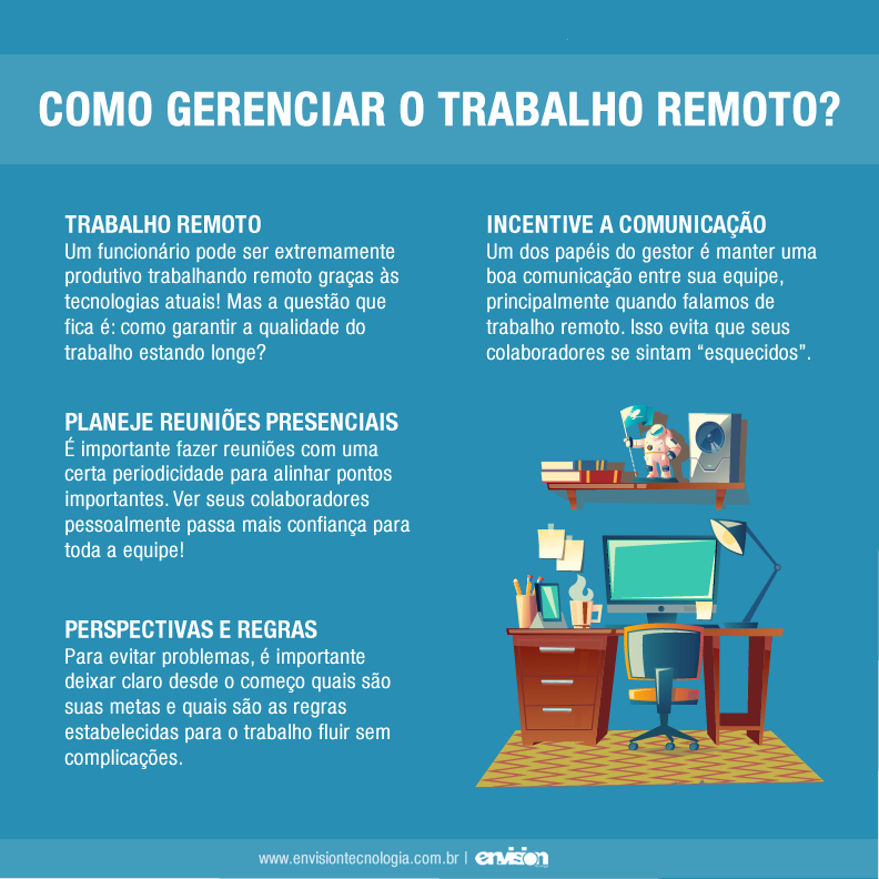 Um funcionário pode ser extremamente produtivo trabalhando remoto graças às tecnologias atuais! Mas a questão que fica é: como garantir a qualidade do trabalho estando longe? No artigo de hoje vamos falar sobre como gerenciar o trabalho remoto!