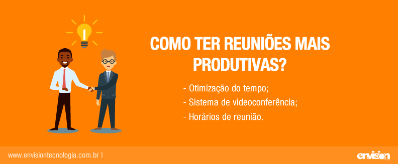 Você já parou para pensar o quanto de tempo você perde em reuniões? E não falamos de reuniões que realmente são importantes, mas aquela que se estende muito mais que o esperado, o que não quer dizer que ela tenha sido produtiva. Pensando nisso, no artigo de hoje trouxemos algumas dicas para suas reuniões serem mais produtivas!