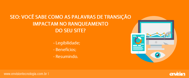De forma sucinta, as palavras de transição irão ajudar na legibilidade do conteúdo, porém cuidado com o excesso. Se bem utilizadas, elas farão com que o leitor permaneça no site, fazendo com que sua página seja melhor ranqueada.