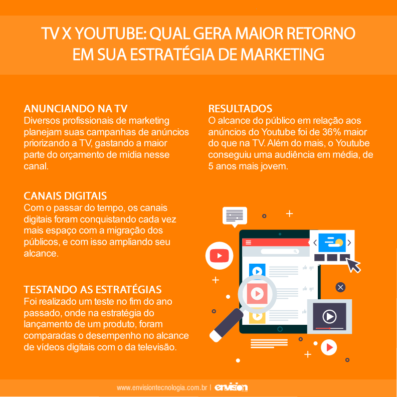 TV X YouTube: Qual gera maior retorno em sua estratégia de marketing? Você já deve ter ouvido de alguém que o alcance e a escala da televisão são incomparáveis, não é mesmo? Essa afirmação já foi verdade, mas não para os tempos atuais. No artigo de hoje você vai entender se vale mais a pena anunciar na TV ou no Youtube! Como ter um maior alcance de público? Diversos profissionais de marketing planejam suas campanhas de anúncios priorizando a TV, baseando-se nos índices de audiência dos maiores veículos, gastando a maior parte do orçamento de mídia nesse canal. Com o passar do tempo, os canais digitais foram conquistando cada vez mais espaço... 25 de setembro de 2019 Master Administrador Marketing 0 comentários Deixe um comentário Cancelar respostaO seu endereço de e-mail não será publicado. Campos obrigatórios são marcados com * Salvar meus dados neste navegador para a próxima vez que eu comentar.