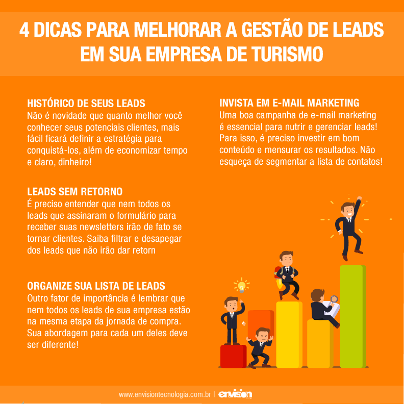 Otimizando a produtividade em sua empresa de turismo Já falamos aqui no blog sobre a importância de sempre buscar otimizar a produtividade em sua empresa. Sendo assim, no artigo de hoje vamos falar sobre algumas maneiras para melhorar a produtividade em sua empresa de turismo! Boa comunicação entre a equipe Ter uma boa comunicação interna é primordial para uma boa produtividade, levando em conta que uma informação mal passada pode precisar que todo o trabalho seja refeito. O uso de ferramentas para melhorar a comunicação interna também podem ser uma boa saída! Deixe as metas e os prazos mais claros Não adianta definir metas e prazos inviáveis, que... 30 de maio de 2018 Master Administrador Marketing 0 comentários Deixe um comentário Cancelar respostaO seu endereço de e-mail não será publicado. Campos obrigatórios são marcados com * Salvar meus dados neste navegador para a próxima vez que eu comentar. O período de verificação do reCAPTCHA expirou. Por favor, recarregue a página.
