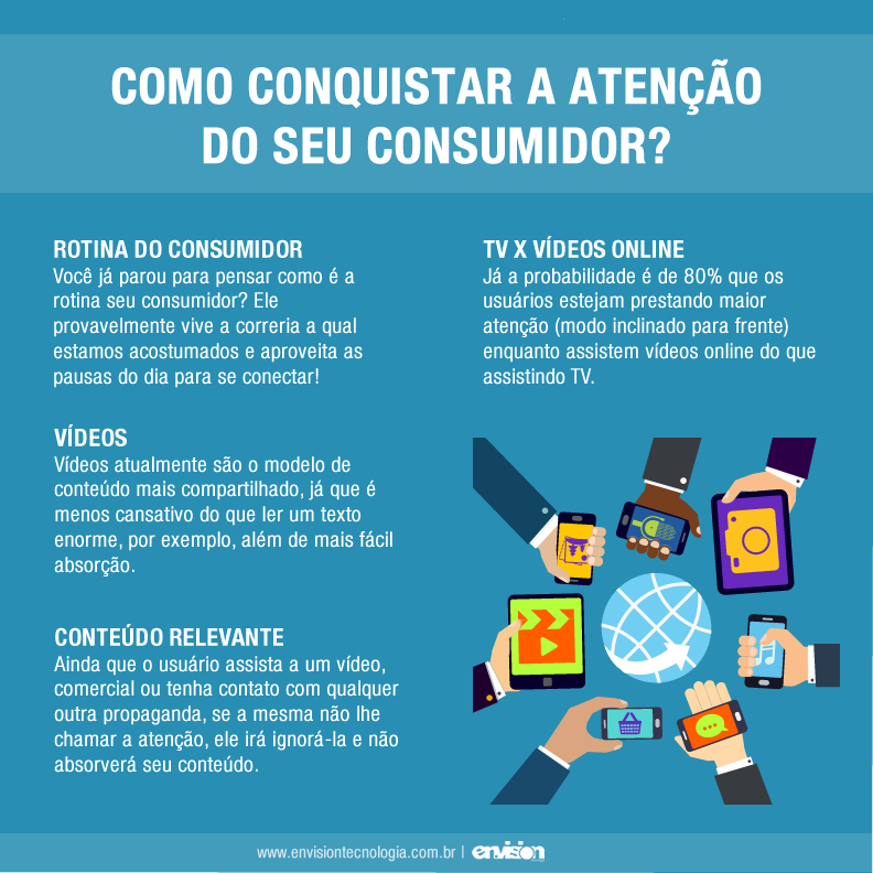 Como conquistar a atenção do seu consumidor? Você já ouviu nos últimos tempos alguém te falar que o consumidor atualmente está cada vez mais desatento? Será que isso é verdade? No artigo de hoje vamos falar sobre hábitos do consumidor e como conquistar sua atenção! A rotina do consumidor Você já parou para pensar como é o dia-a-dia do seu consumidor? Ele provavelmente vive uma rotina de correria a qual estamos acostumados: acorda, pega trânsito, toma café enquanto checa e-mail e as notícias do dia e aproveita as pausas do dia para conferir as notificações do celular… Ou seja, sempre que possível, ele se conecta e... 11 de abril de 2018 Master Administrador Marketing 0 comentários Deixe um comentário Cancelar respostaO seu endereço de e-mail não será publicado. Campos obrigatórios são marcados com * Salvar meus dados neste navegador para a próxima vez que eu comentar. O período de verificação do reCAPTCHA expirou. Por favor, recarregue a página.