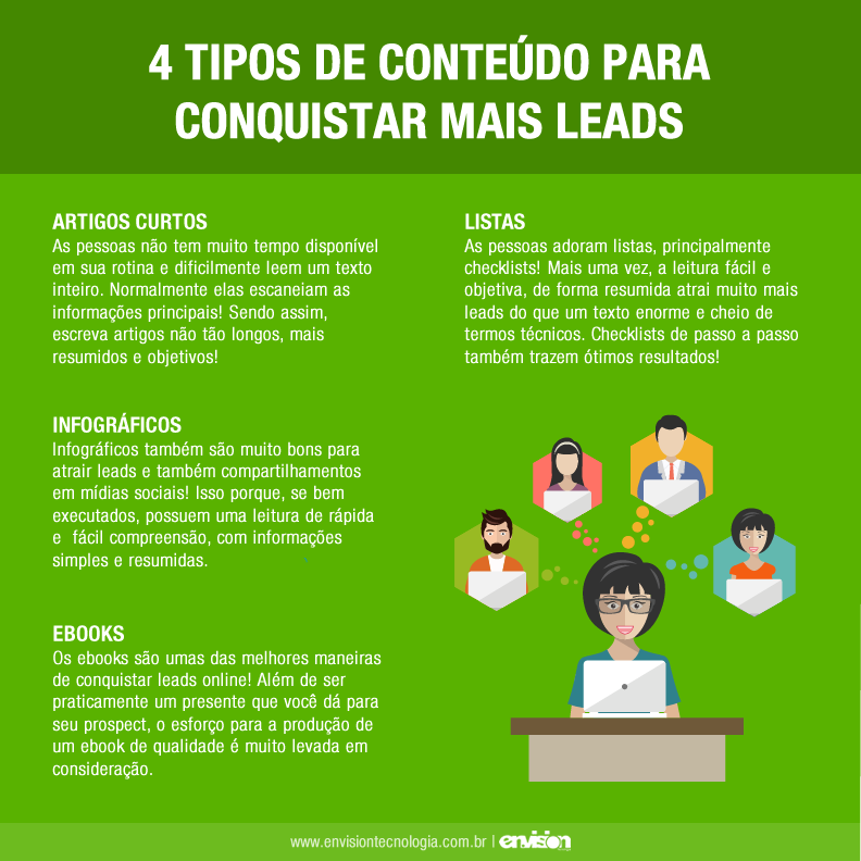 4 tipos de conteúdo para conquistar mais leads! Sempre falamos na importância de produzir conteúdo relevante a seus prospects e clientes, afinal, o Inbound marketing funciona como uma moeda de troca: enquanto você ajuda seu lead com dúvidas e maiores informações, o mesmo cria um vínculo com a sua empresa, aumentando consideravelmente as chances de conversões! Artigos curtos Lembre-se que seu potencial cliente também vive na correria e não tem muito tempo disponível. Além disso, como também já falamos aqui no blog, as pessoas dificilmente leem um texto inteiro, normalmente elas escaneiam as informações principais. Sendo assim, escreva artigos não tão longos, mais resumidos e objetivos! Ebooks Os... 13 de abril de 2018 Master Administrador Marketing 0 comentários Deixe um comentário Cancelar respostaO seu endereço de e-mail não será publicado. Campos obrigatórios são marcados com * Salvar meus dados neste navegador para a próxima vez que eu comentar. O período de verificação do reCAPTCHA expirou. Por favor, recarregue a página.