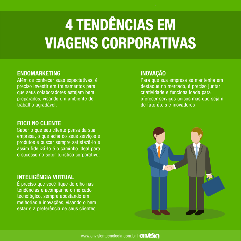 4 tendências em viagens corporativas Você que trabalha com viagens corporativas já sabe quais são as tendências para os próximos anos? No post de hoje trouxemos quatro dicas para que sua empresa de turismo continue no topo no quesito viagens a negócios. Confira! 1- Endomarketing Se você que ter sucesso no mercado corporativo, a endomarketing é um elemento essencial. Para que seus colaboradores deem o melhor de si, é preciso investir em treinamentos para que estejam bem preparados e saber quais são suas expectativas e dificuldades para que o ambiente de trabalho tenha um clima agradável onde todos se sintam confortáveis para realizar suas funções.... 8 de agosto de 2016 Master Administrador Corporativo, Marketing, Mercado de turismo 0 comentários Deixe um comentário Cancelar respostaO seu endereço de e-mail não será publicado. Campos obrigatórios são marcados com * Salvar meus dados neste navegador para a próxima vez que eu comentar. O período de verificação do reCAPTCHA expirou. Por favor, recarregue a página.