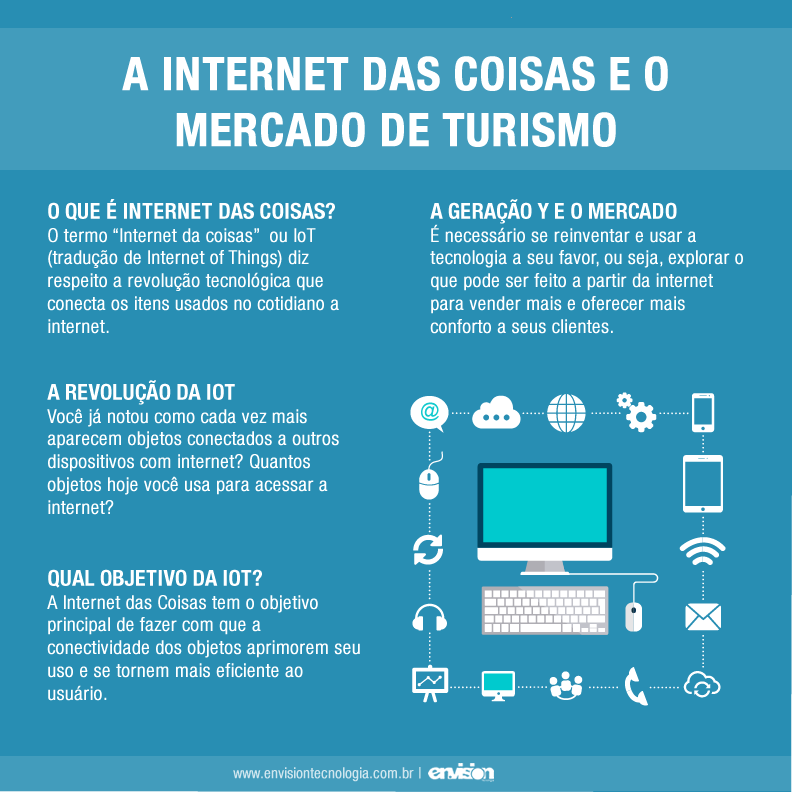 Internet das coisas e o mercado de turismo Você já está familiarizado com o termo Internet das Coisas? Se você ainda não conhece, acredite que você ainda vai ouvi-lo muito! No post de hoje vamos falar sobre seu significado e porque é tão importante para a revolução do mercado de turismo! O que é Internet das Coisas? O termo “Internet da coisas” ou IoT (tradução de Internet of Things) diz respeito a revolução tecnológica que conecta os itens usados no cotidiano a internet. Você já notou como cada vez mais aparecem objetos conectados a outros dispositivos com internet? Quantos objetos hoje você usa para acessar a internet?... 18 de janeiro de 2017 Master Administrador Marketing, Tecnologia 0 comentários